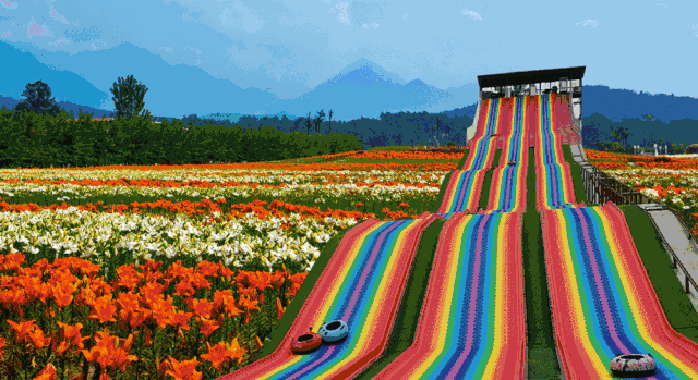滑道凌空花海之上