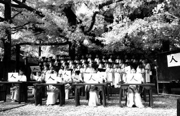 莒县第二实验小学齐聚银杏树下 举行“开笔礼”仪式
