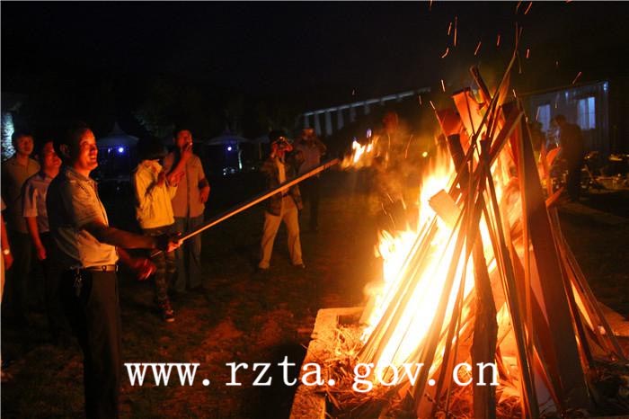 开幕式上日照市旅游局副局长赵志超举起火把,点燃篝火,宣布“让子弹飞”山东黑虎山狩猎场第一届烧烤节正式开幕,引得参加此次烧烤节开幕的游客一片欢呼。