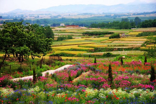 花海是由一个品种的花种植而成,因其面积广大,开花时节,犹如置身一片花的海洋,令人心旷神怡,流连忘返。欧式风情园内种植10万株郁金香与百合,多达10余个花色品种,婀娜多姿,风情万种。其实不管是什么花,只要形成的规模,远远地望去,都好看。就像我们上学的时候穿的校服,虽然难看,但是做操的时候整整齐齐的,也是很漂亮的。