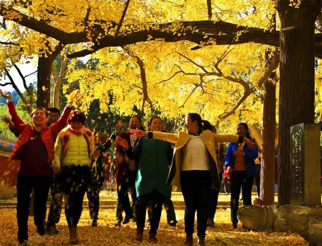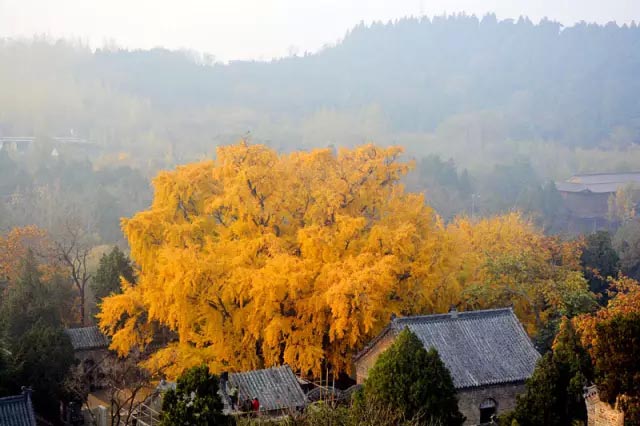 远看形如山丘,龙盘虎踞,气势磅礴,冠似华盖,繁荫数亩。有专家考证,浮来山银杏树历经20个朝代,在大禹治水之前已有之,是一部“活历史”,当称“活化石”。
