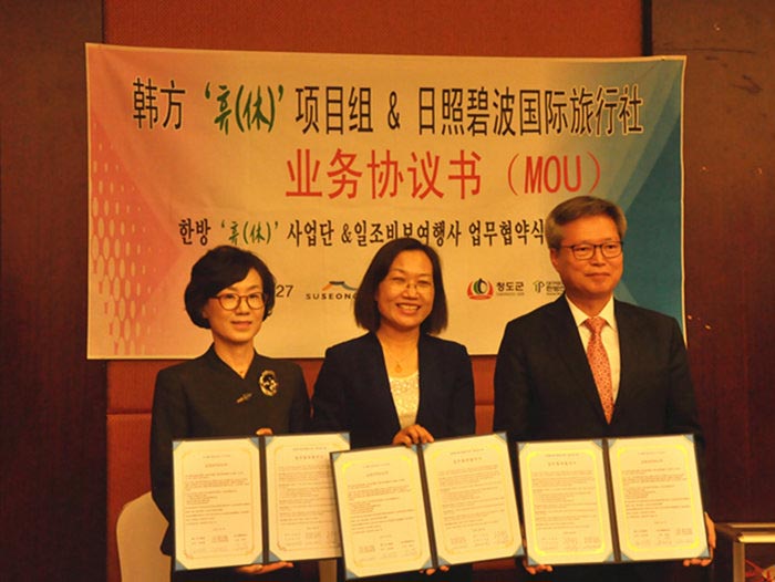 在推介会上,日照碧波国际旅行社与韩国大邱市签署了合作协议,并于近期组织旅游团队前往大邱观光旅游。