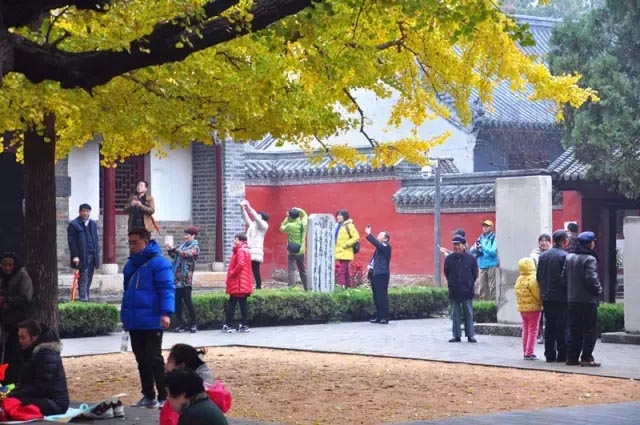 2015年11月8日,早10点,阴有小雨。“天下银杏第一树”树叶已经变黄了,有的枝桠已经变成金黄色。前来参观的游客、摄影爱好者络绎不绝。由于最近几天天气的原因,推荐11月8—10日前来参观。