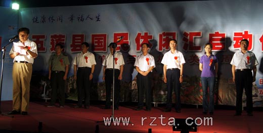 日照市旅游局副局长禚磊,五莲县委副书记、县旅游工作领导小组组长郝善双,县人大副主任李树湘,县政府副县长胡靖,县政协副主席王世群,县纪委常委穆永刚,县人武部副部长周召安等出席国民休闲汇仪式。