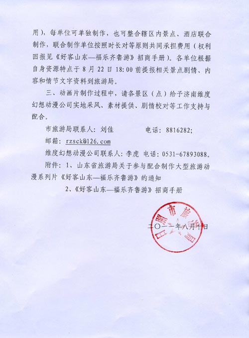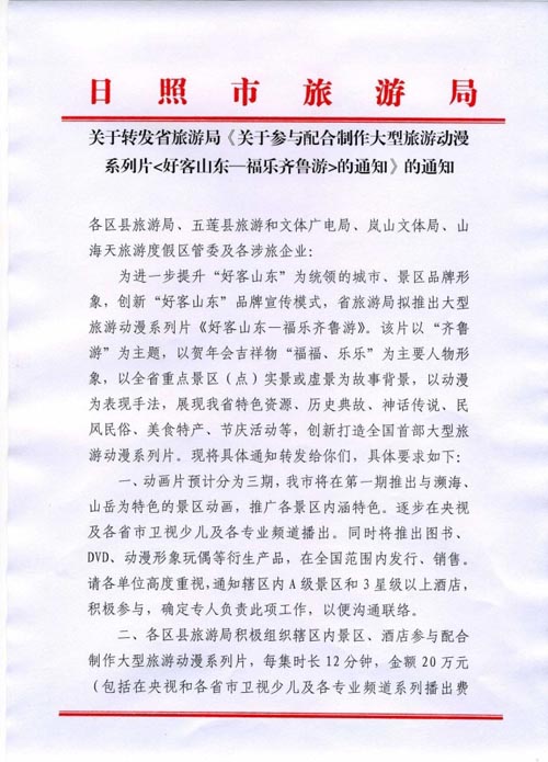日照市旅游局关于转发《好客山东_福乐齐鲁游》动画系列的通知