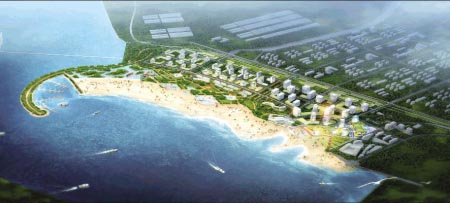 2.这个区域生态本底优势明显,拥有沙滩、礁石、湿地等多种自然资源,尤其是金沙滩,以滩平沙细在全国闻名。卧龙山与蓝天、碧海、金沙滩相得益彰,形成山城交融、海天一色的独特魅力。