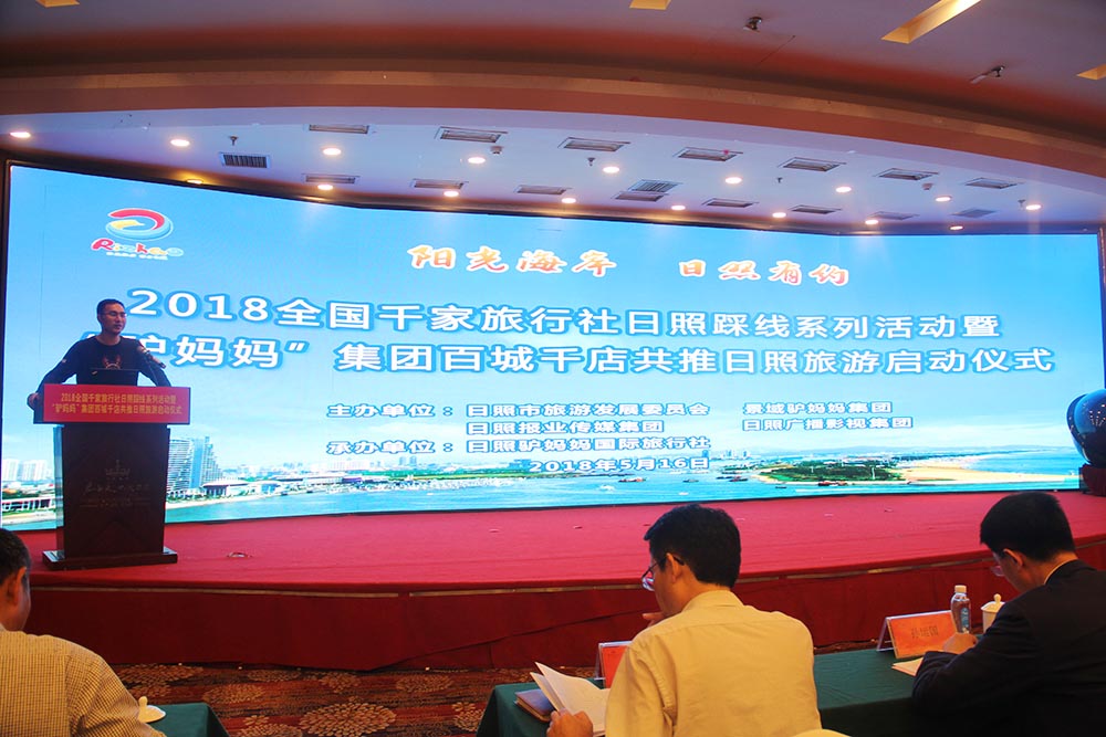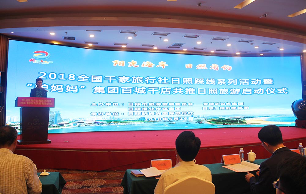 5月16日,以“阳光海岸·日照有约”为主题的2018全国千家旅行社日照踩线系列活动暨“驴妈妈”集团百城千店共推日照旅游活动在我市成功举办。市政府副市长林彦芹出席会议并致辞,景域驴妈妈集团副总裁任国才、市政府副秘书长孙运国、市旅发委主任王均波、日照报业传媒集团副总编辑宗瑞凯、日照广播影视集团副总编辑李康、市旅发委副主任赵志超等领导出席会议。来自全国各地的驴妈妈集团子公司及门店负责人、日照各区县旅游局负责人、旅行社、景区负责人以及市内外媒体记者共400余人参加了推介活动。