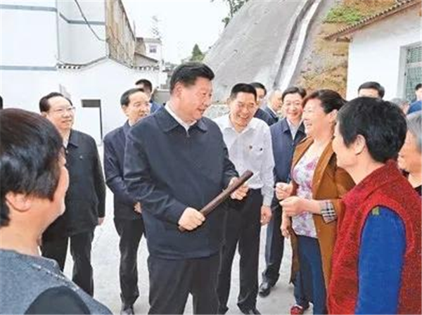 2018年4月24日下午,习近平在湖北省宜昌市许家冲村考察时,在便民洗衣池边同村民亲切交谈。