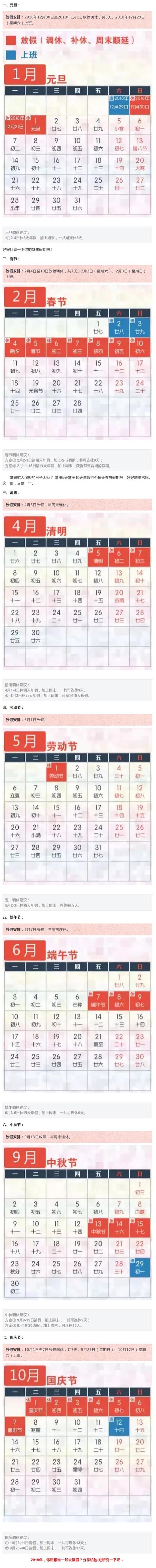 2019年放假安排新鲜出炉有些网友觉得假期太短,那可能是你不会拼!怎样利用年假拼出超长假期?请收好这份2019“最强拼假攻略”!