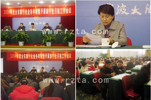 本网讯 12月31日上午,2004年度日照市旅行社业务年检暨开展旅行社月报工作会议在碧波大酒店举行,全市83家旅行社参加会议。市旅游局副局长张荣英出席会议,并作了重要讲话。会议由旅游局质监所所长杨家坤主持。