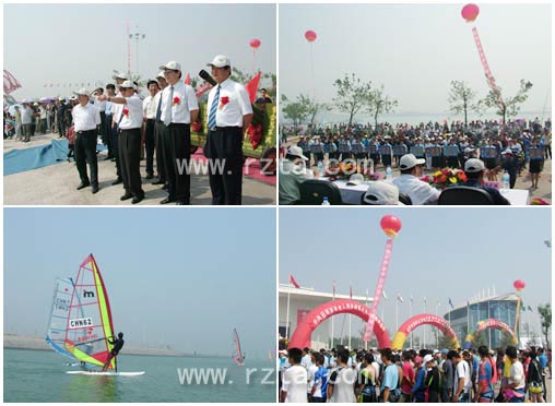 6月12日,2005年全国翻波板锦标赛暨青少年帆板锦标赛在日照正式拉开战幕。恰逢海滨旅游旺季来临之际,我们在比赛基地看到,前来观看赛事的人群络绎不绝,这一盛大的体育赛事点燃了港城人民和游客们火热的激情。