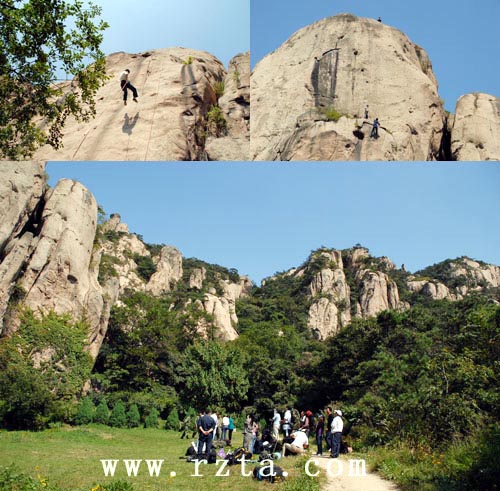 在人们还没过足海滨浴时,一些攀岩爱好者又玩起了攀岩运动。看,在崖壁上的他们,下面队友们争相发出鼓励的话。