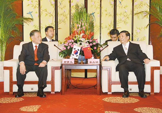 姜大明对客人的来访表示欢迎。在简要介绍了山东经济社会发展情况后,姜大明说,近年来,韩国现代汽车集团在中国市场发展迅速,以日照为中心的汽车零部件基地建设发挥了重要作用。山东高度重视与韩国的经贸往来,我们很高兴看到现代汽车集团把威亚汽车发动机、汽车模具、岱摩斯车桥、现代派沃泰变速箱项目放在了日照,并带动了相关企业在日照落户,形成较为完善的汽车产业链条。希望郑梦九会长今后继续发挥在韩国的巨大影响力,对山东与韩国之间的经济合作给予更多支持和帮助。山东将一如既往地支持现代汽车集团在鲁投资项目的建设,期待双方在更多领域进行交流合作,实现互利共赢。