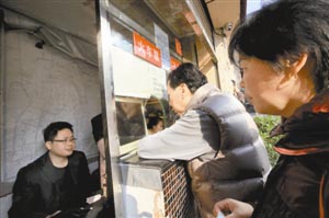 25日起,春运第一天(2014年1月16日)的临客火车票开始出售。图为市民昨日在售票处购买火车票。